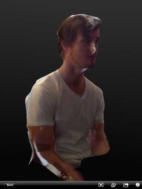 Tomar una foto con cinta adhesiva el icono de la cámara el asistente recorre catchee tomando las fotos de la catchee el pecho cada manteniendo cabeza de catchee dentro del marco. El objetivo sería obtener 10-15 fotos en cada vuelta alrededor de la persona y tener 3 vueltas; uno debajo de catchee eyeline, uno en el eyeline y uno arriba (como se muestra en el diagrama).