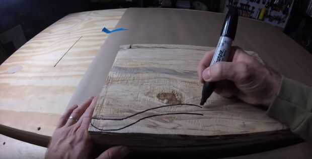 Empecé con un pedazo de madera spalted muy áspero que pensé que sería increíble cuando se completa. Asegúrese de que el grueso de la madera tendrá en cuenta la anchura de su spork... o FOON si lo prefiere. Sólo usé un marcador negro para esto. No te preocupes, todas las líneas de tu dibujo serán cortar y lijar a.