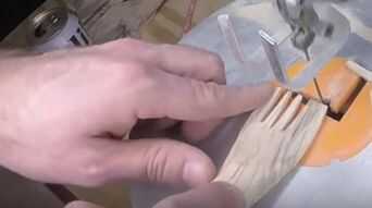 partes:1. cuñas de madera de2. pegamento de carpintero3. cinta4. las abrazaderas de muellePaso 1: Unir cuñas de madera 1. pegan cuñas de madera para formar una pieza sólida de madera2. Utilice abrazaderas para conseguir un asimiento sólido.Paso 2: Co