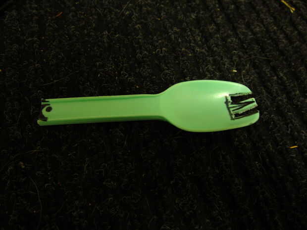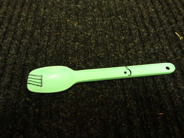 Bueno esto es bastante simple solo marca cuatro líneas en la cuchara, luego corte en las líneas con una sierra para metales, siguiente doblan hacia abajo las pestañas medianas que cortar y girar. Ahora trace una línea hasta la manija donde quieras cortar y cortar el mango. Las fotos lo dicen todo:)