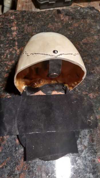 Entonces usé cemento de contacto otra vez para unir los lados dentro del cráneo, así como un pequeño trozo para cubrir hasta el último de la parte interior de la base.
