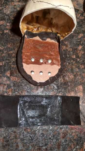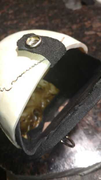 He utilizado un trozo pequeño de gamuza que corté para actuar como una correa para el cierre y a conectar el remache de espiga a la copia instantánea.