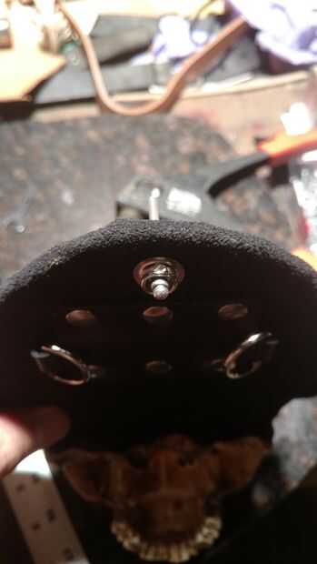 Solución 4: uso un decorativo punto pequeño remache para el cráneo y un broche de presión en el respaldo.