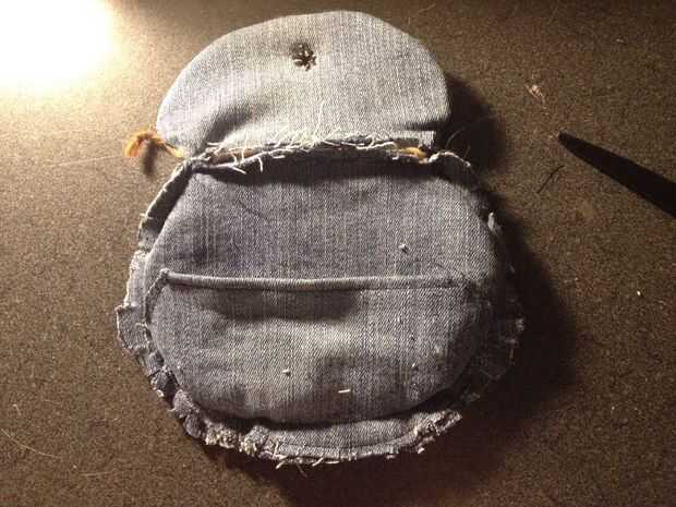 el bolso fue creada de una mitad de la parte superior de los pantalones vaqueros que se utilizaron para el jardín Jean Cap anteriormente publicada.  Cortar el bolsillo de la otra mitad a coser como una bolsa en los bordes del interior de la cremaller