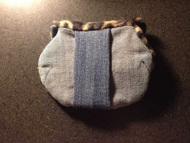 el bolso fue creada de una mitad de la parte superior de los pantalones vaqueros que se utilizaron para el jardín Jean Cap anteriormente publicada.  Cortar el bolsillo de la otra mitad a coser como una bolsa en los bordes del interior de la cremaller