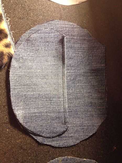 con aproximadamente 1/4" costura. Se trata de su bolsillo. Luego lo cose el borde curvado hacia el lado derecho de una de su pedazo de bolso de jean.