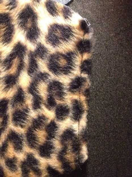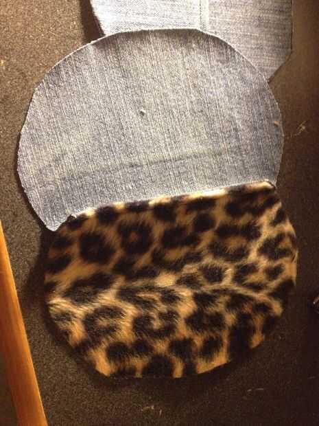 Coser los lados del derecho juntos del impresión del guepardo y la última pieza del bolso de jeans. Sólo la superior aunque! Prensa