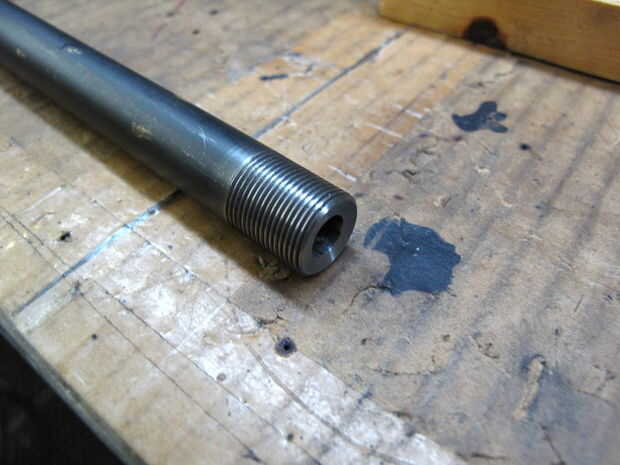 Nota importante: A barril pilotado mueren (para enhebrar un barril) no proporcionan la precisión necesaria para su uso con un supresor. Si usted planea usar un supresor, necesita hilo de rosca del cañón en un torno asegurándose de que las roscas son concéntricas con el agujero - y - asegúrese de que tiene suficiente material para un hombro decente al hilo contra. Si como yo, sin embargo, sólo piensa en el uso de un freno de boca, el cañón experimental dado proporcionará precisión.