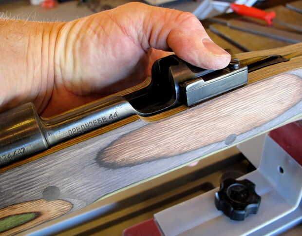 2) quitar la acción cañón y sacar un poco de material en el área de contacto utilizando su arma de elección - un archivo, dremel o cincel hará todo el trabajo.