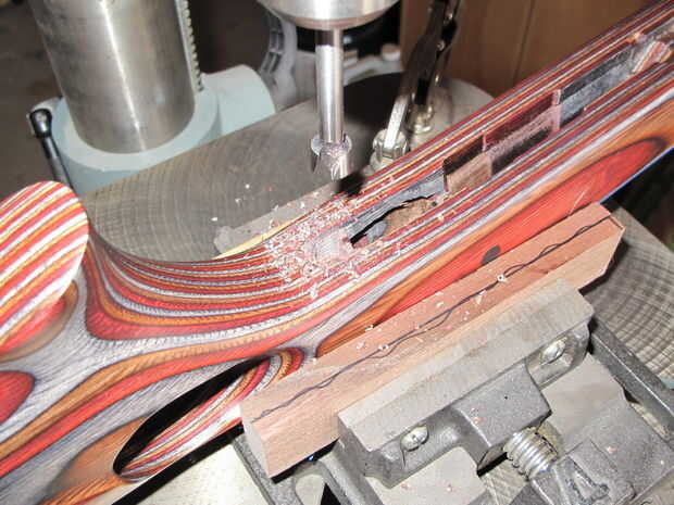 Completar el Routeado es bastante sencillo. El receptor será finalmente situado en la población con sólo el área de la zapata delantera y tang posterior área en contacto. El barril y el receptor deben ser más o menos flotante (eso no significa que las brechas enormes, por cierto). Usted quiere asegurarse de que el receptor no rock longitudinalmente en el stock (imaginar un subibaja) - si lo hace, no es puesta en la acción correcta - y una vez que están apretados los tornillos del receptor el receptor será puesto bajo tensión que puedan afectar la precisión. Si usted planea "lecho" el rifle (que es una buena idea) entonces usted puede ser un poco más relajado sobre cómo tomar el material cuando la acción a la culata ya que el compuesto de ropa de cama va a llenar lagunas y darle un ajuste perfecto.