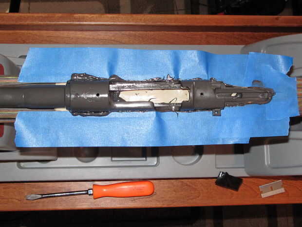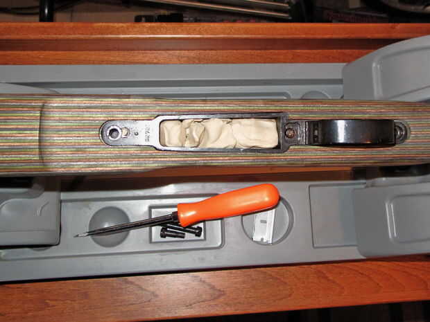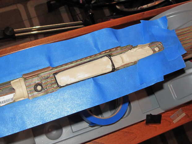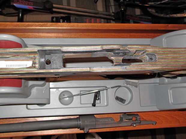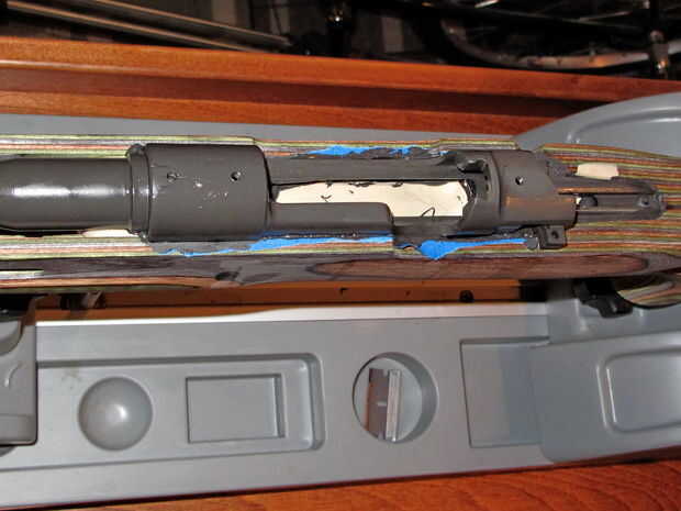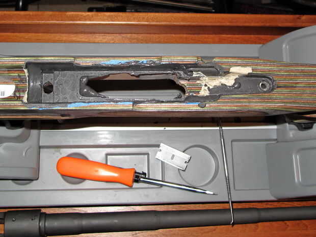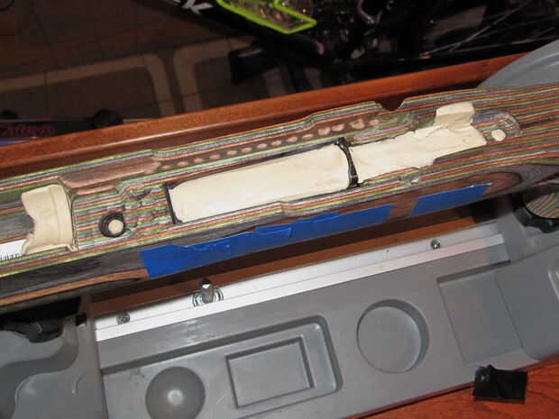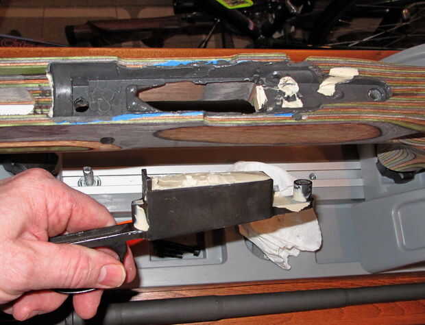 «Ropa de cama un Rifle» es el proceso de utilizar un material de relleno semi líquido que cura en un producto final muy duro para crear una ajuste personalizada "cuna" para un receptor particular en una acción en particular . El resultado casi perfecto ajuste crea un vínculo mecánico muy estable entre el receptor y la acción - y esta estabilidad a su vez mejora la precisión. Es probable que haya media docena o más materiales que las personas utilizan como "compuestos de ropa de cama" - todo, desde adhesivos como JB Weld y Devcon para más específicamente diseñado materiales como Acraglas y Cama de acero. Mi elección personal es Cama de acero de Brownells. Cama de acero es muy resistente cuando está curado y más importante aún es más de parecida a la miel y por lo tanto un poco más fácil de controlar como la mantequilla de cacahuete que su consistencia de trabajo. Tiene la desventaja más fácilmente creando vacíos, pero la facilidad de uso hace compensación aceptable a mí. En cuanto a "agentes" - otra vez - hay un montón de opciones. Cera en pasta Johnsons es común, pero usé SynAir Synlube 1000 desmoldante que utilizo moldeado de uretano (por lo tanto, lo tenía ahí) - y funcionó perfectamente.