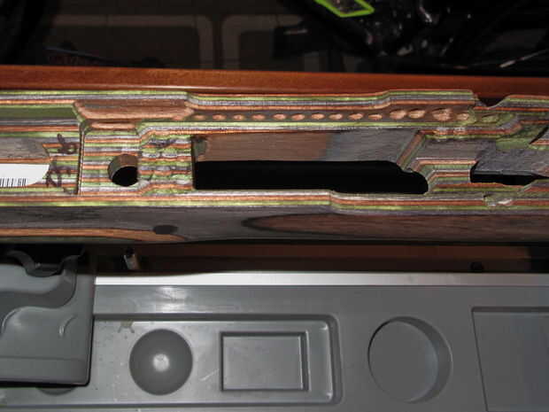 "Pilar-" es el proceso de instalación de metal «pilares» para controlar con precisión la relación espacial entre el receptor y el "metal de fondo" que consiste en el guardamonte y la revista. Esto es especialmente importante en las existencias de madera donde el exceso de torque en los tornillos del receptor, o, expansión y contracción de la humedad, puede comprimir la madera y distorsionar el receptor... y como sabemos ahora, que distorsionan el receptor puede afectar la precisión. Columnas prefabricadas pueden adquirirse en un número de proveedores o por encargo. Hice los pilares para el Mauser de aluminio y compró los pilares para el Mosin Nagant de Twin Industries.