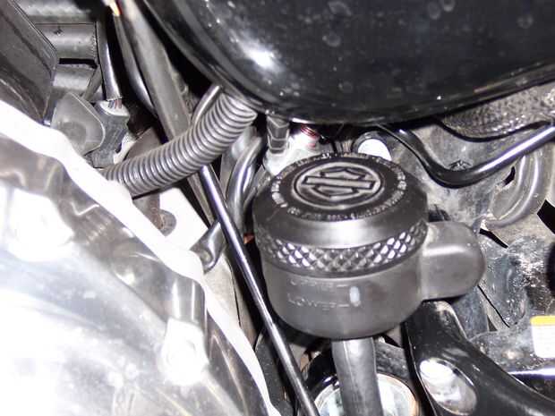 Tendrá que purgar los frenos. Cuando usted toma el interruptor que permite aire. Si tratas de los frenos ahora el interruptor no funcionará porque con el aire en el sistema de la presión no será lo suficientemente alta como para activar el interruptor nuevo. Que no he incluido porque hay muchísima información allí sobre cómo hacerlo aquí de purga del freno. Con los frenos purgar correctamente, vuelva a instalar la tapa del tanque... solo lo coloque en su sitio.