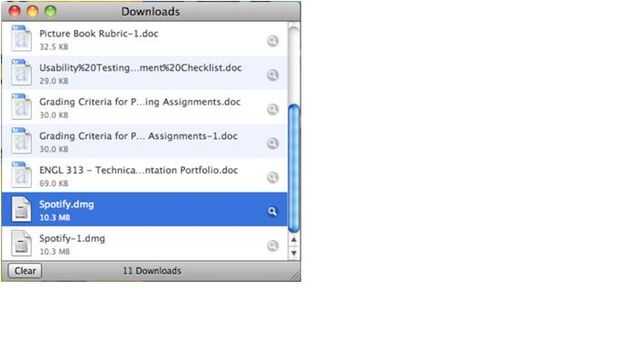 4) una vez completada la descarga, seleccione Spotify.dmg en el menú "Descargas".