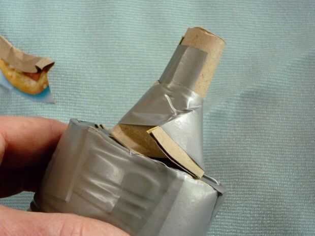 Su collar no será lo suficientemente fuerte para una pesada lata de aerosol de insecto, por lo tanto reforzar el collar con piezas de doblado primero tarjeta de una manera y luego el otro. Fig. 13,14.