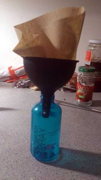 Conseguir su embudo otra vez y esta vez también algo para filtrar con.