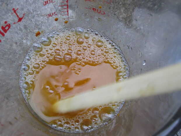 Luego tomar la varilla de mezclar y mezclar para arriba muy buena.