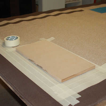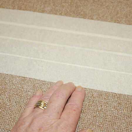 Es esencial para aplicar un borde grueso de la cinta alrededor de las áreas a pulverizar y también para asegurarse de que los bordes se presionan firmemente en la superficie de la alfombra. La cinta adhesiva disponible localmente no se pega bien o por mucho tiempo, y esta es otra razón por qué me gusta usar pintura en aerosol. Usted puede fácilmente y rápidamente máscara y área y la pintura de aerosol antes de la pintura comienza a levantarse.