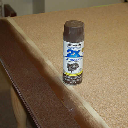 Si usted tiene algunos de los cortes de madera o de tablero, puede utilizar esto para proteger el interior áreas de rociado accidental, además de con la cinta de enmascarar. Otra forma de evitar el exceso de pulverización es cubrir áreas dentro de la alfombra. Usted puede utilizar diario, plástico o cualquier otra cosa que protegerá del rociado excesivo. Pintura en aerosol Rust-Oleum es un excelente producto y ofrece alta cobertura con sólo una sola capa, lo que es rentable para proyectos como este.
