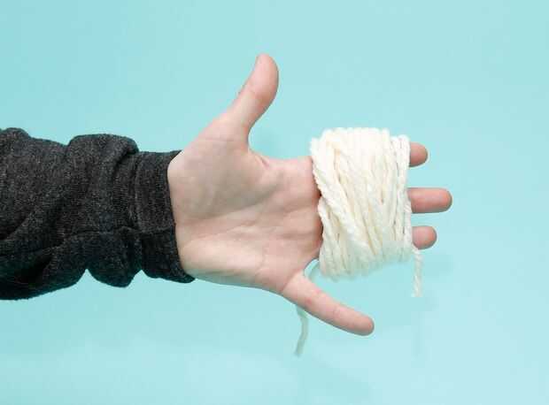 Deslice su mano o la bifurcación siguiente. Corte otro pedazo de hilo, aproximadamente seis pulgadas de largo y envolver alrededor del hilo. Atar dos veces y apretados! Ahora, tienes el hilo enrollado, dividido por el centro con la cadena que sólo atado. Amarre otro pedazo de cuerda alrededor de los lazos