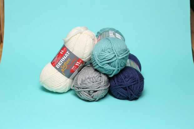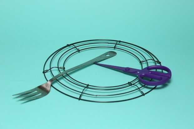 Pedí cuatro madejas de hilo grueso de Bernat. Lo consegui en Amazon y escogió cuatro colores que me encanta; crema, gris, marino y verde azulado. Soy una chica náutica en el corazón! He comprado un anillo de corona de 12 pulgadas (también de Amazon). Agarré un tenedor de servir (esto hará sentido pronto) y mis tijeras. Si no tienes un tenedor de servir o quiere utilizar uno, puede utilizar los dedos. Te voy a mostrar qué tan pronto. El siguiente paso es tomar las envolturas del hilado y escoger un color para comenzar con. Usted puede trabajar con más de uno en uno, pero digamos que avanzada pom pom de decisiones. Comience con un extremo del hilo y sólo envuélvalo alrededor de su mano o el tenedor de servir. Envuelve cada pom pom unas 30 veces. Envuelva el hilo alrededor de su mano cerca de 30 veces