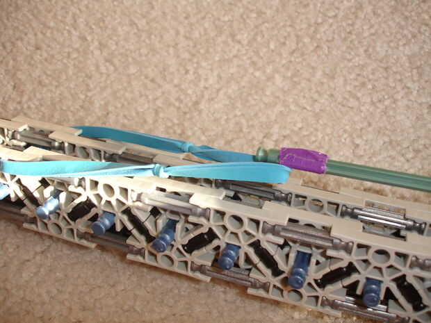 En realidad es bastante simple. Sólo la munición a la banda de goma del gancho y encájela en el mecanismo.