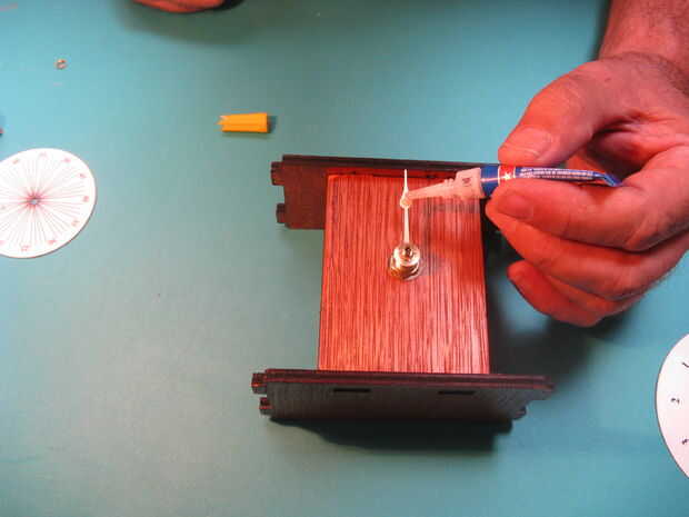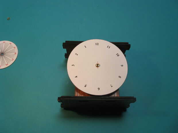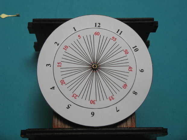 La cara de minutero debe apenas Deslice el eje minuto, se mantiene en su lugar por la forma oblonga del eje y el agujero perforado en la cara de la manecilla de los minutos. Después de tener la mano minuciosa en el lugar, enroscar la tuerca que viene con las manos Coloque en el eje.