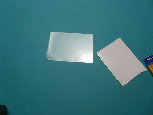 Inicialmente traté de utilizar cinta de embalaje transparente para este propósito. Lo que encontré fue que la cinta de embalaje no es tan clara como usted quiere, así que incluso si salgo todas las burbujas de aire, no se verá tan bien como las bolsas que laminan.