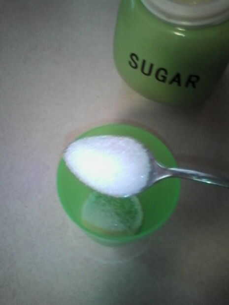 En otra taza, añadir 3 cucharadas pequeñas de azúcar.