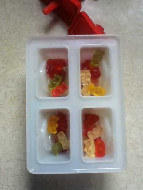 Abre tu bolsa de Gominolas y poner una cantidad apropiada y poner en cada molde.