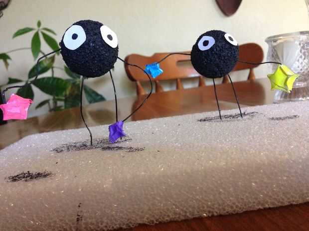 los pequeños sprites de hollín de las películas de Miyazaki (Chihiro y mi vecino Totoro) también son freaking lindo. He decidido que debo tenerlos. Por suerte para mí, eran bastante fáciles de hacer. Sólo necesita algunas cosas para comenzar, y los m
