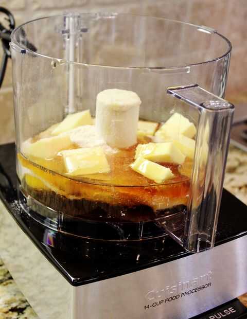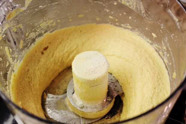 2. Ponga todos los ingredientes en el procesador de alimentos. Encienda y procesar por 30 segundos. Parar y raspar hacia abajo los lados del tazón con una espátula de goma. Proceso nuevamente por otros 30 segundos. Usted necesitará hacer esto (parada, raspar, proceso) hasta que la masa es completamente lisa y no trozos de izquierda mantequilla (me lleva cerca de 3 veces).