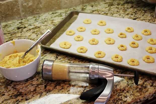 2. usando una prensa de galletas para hacer cookies es increíblemente fácil y rápido... casi como una línea de montaje de la máquina! Las cookies también saltar uniforme y perfectamente en forma. Parecen vienen de una panadería italiana profesional.