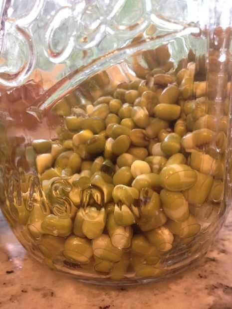 Simplemente correr agua en el frasco para llenarlo y luego gírelo boca abajo para drenar el agua, el agua que se aferra a los granos dos veces al día es suficiente agua para tenerlos lejos brotación en pocos días. Fijar el frasco derecho hacia arriba otra vez.