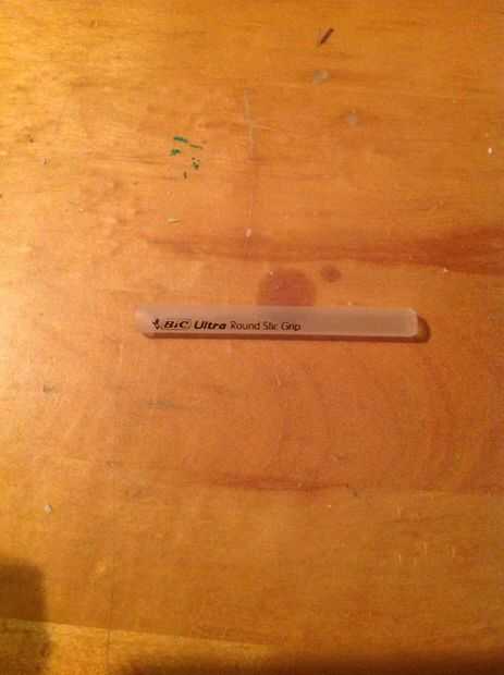 Para esto realizará un bolígrafo Bic y hacer lo mismo que hiciste para el cañón pero un poco más corto para que puedas usar los retazos de esta pluma para hacer la mira pequeña en el extremo del cañón. Utilice tijeras para afilar un extremo.