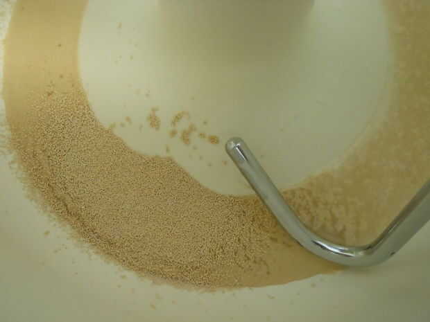 En el pan batidora pone la levadura en el agua caliente.