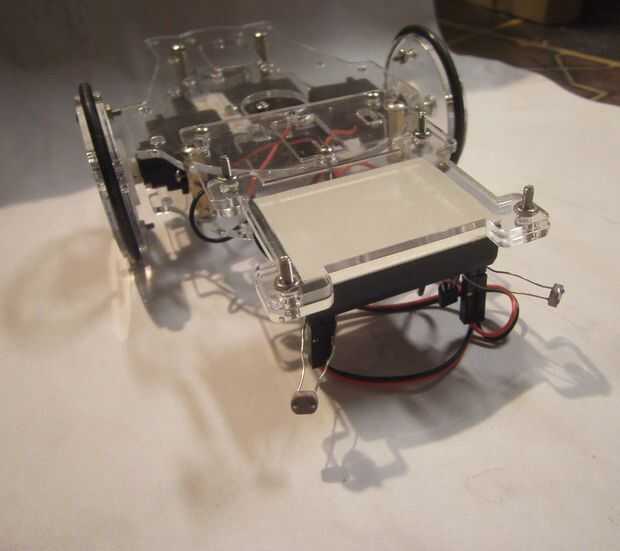 SpurtBots utilizar un simple circuito electrónico de la viga-como para crear un comportamiento robótico. odeling comportamientos de robot en términos fácilmente entendibles para los seres humanos es una forma útil para mirarlo. Circuito de este robot lo hace buscar la luz. Dará vuelta hacia la fuente local más brillante de la luz. M