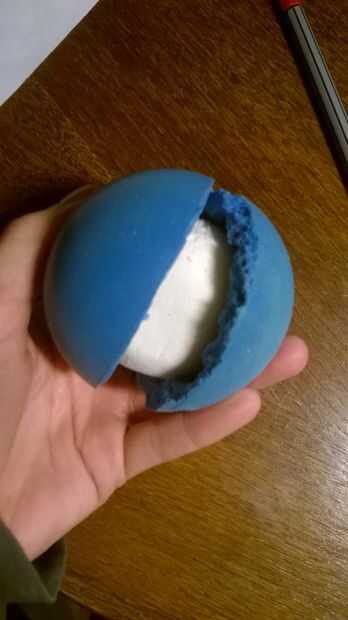 Nota: Porque se trata de un prototipo muy allí no son ningún juguete en pelotas poco todavía. El wil de bolas reales tienen una más difícil dentro de la cáscara. Aquí mostramos cómo hueco del beísbol con pelota blanda y llenarlo con espuma, así que la bola de prototipos tendrá la misma resistencia.