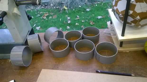 - Dril 4 x 2 agujeros en cada pieza, asegúrese de que los agujeros están en línea (en el diámetro transversal del tubo.)