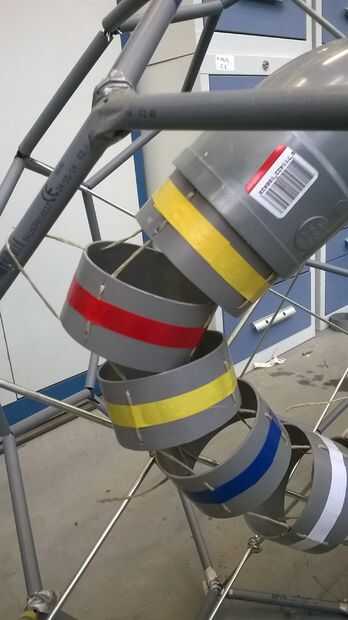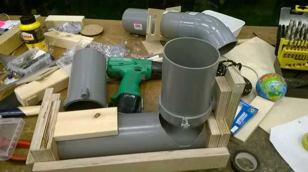 - Cubrir los 2 lados restantes en los extremos con las placas de madera para que la pelota sólo es capaz de pasar de la primera pipa, a través del tubo de giro a la tubería siguiente.