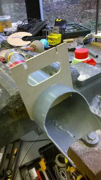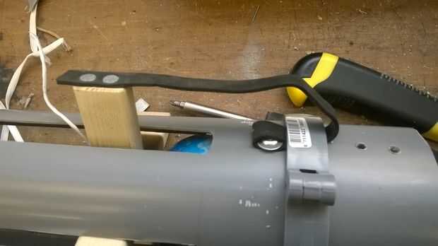 - Uso un pice de tubo de PVC cortado 100 mm de la parte superior y hacer un agujero en el otro lado para que la bola puede caer a través.