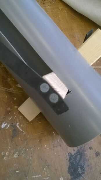 - Utilice remaches y un sostenedor del clip para fijar los otros lados de la banda de goma al tubo.
