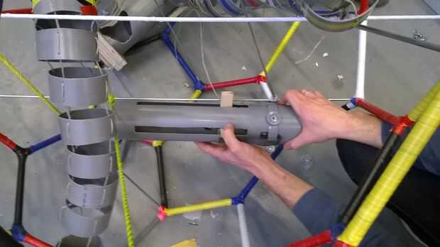 - Conectar el sistema de lanzamiento a los marcos del laberinto usando el alambre de metal y bridas