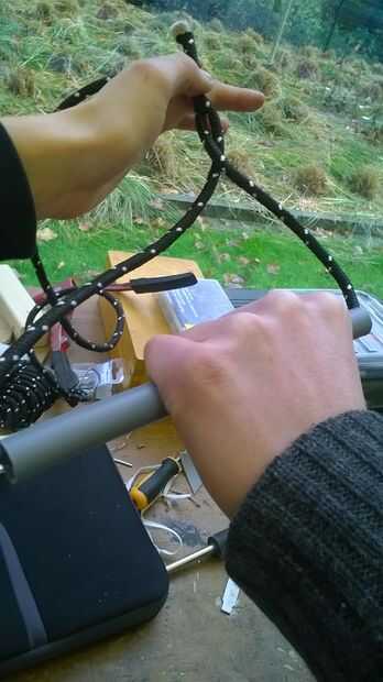 - Utilizar cuerda para crear un mango, nudo a la Cruz y adhiera un pedazo de PCV hasta el final.