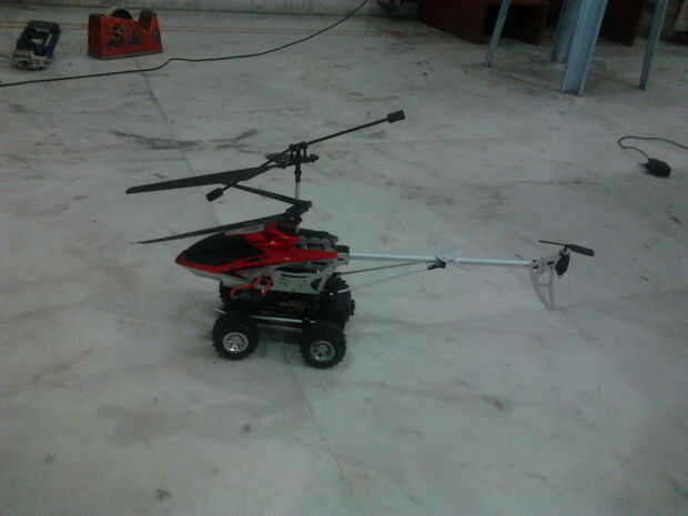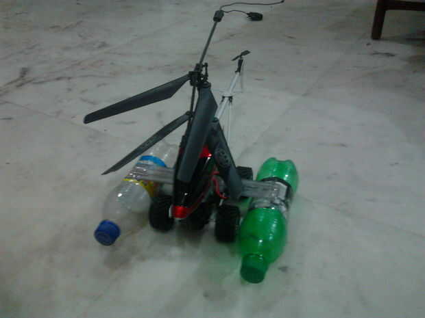 Ahora primero Desenroscar el coche de control remoto y retire la parte superior del coche. Retire ahora todas las piezas extras que el coche ligero peso incluso Retire las pilas ahora conectar el coche a los terminales de la batería del helicóptero y conecte la base inferior de la atención en el helicóptero con la ayuda de pegamento.