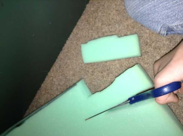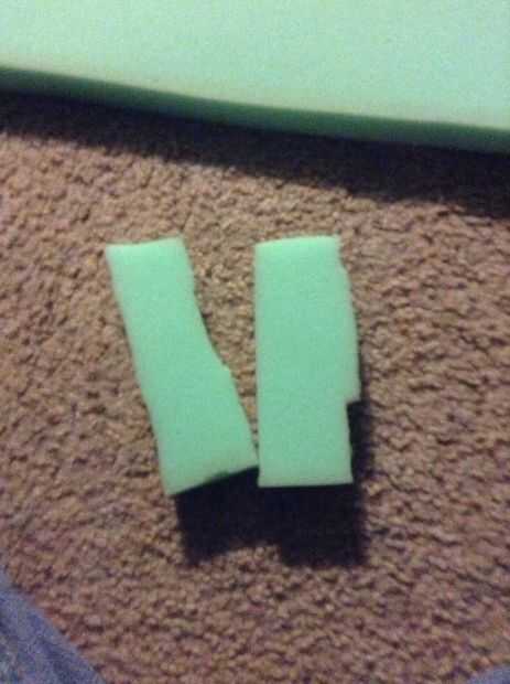 Ahora toma la espuma y cortar una pieza de 4 pulgadas por 1 pulgada. Cortar dos de ellos y los ponen al lado.