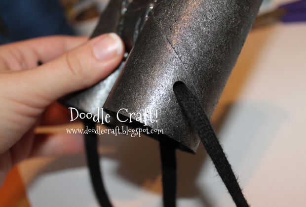 Luego perfore un agujero a cada lado y atar un cordón en los agujeros. Asegúrese de que se ajusta cómodamente alrededor de la cabeza de espías y el cuello.