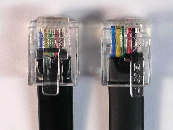 Si nos fijamos en el cuadro 2 (fuente: http://www.philohome.com/nxtplug/nxtplug.htm) te darás cuenta que los conectores RJ12 y el NXT son ligeramente diferentes. El clip que sujeta el conector en es en el centro el conector RJ12, pero en el conector NXT está a la derecha del conector. En mi trabajo de tecnología de información he encontrado que estos clips se rompen a menudo, pero el conector es todavía utilizable. Así, rompí uno de los broches de uno de los conectores en mi cable NXT y presentó el plástico restante hacia abajo por lo que encajaría perfectamente en el conector RJ12.