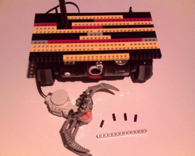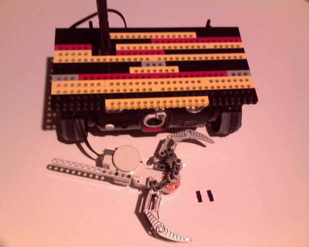 Finalmente la carga de Lego de la cubierta para el Trakr y conectado el accesorio de la garra NXT. Ver cuadros 18, 19, 20 y 21