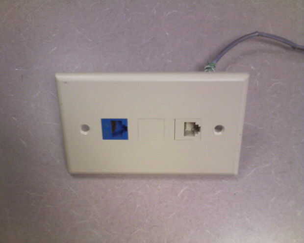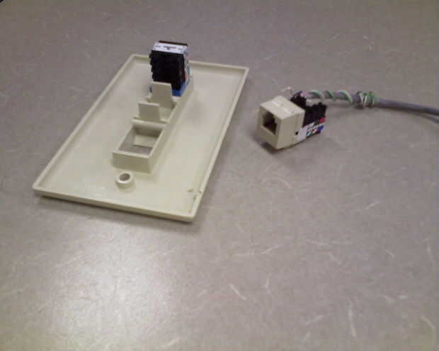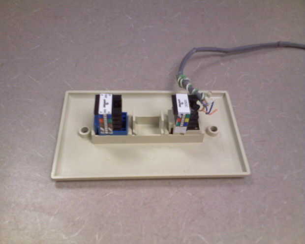 Afortunadamente hubo un nuevo negocio en el edificio donde trabajo y mantenimiento de edificios estaba haciendo algunos la construcción de las oficinas. Mantenimiento había lanzado hacia fuera de los enchufes de red y teléfono de combinación y cogí un par a dejar en mi caja de repuestos.
